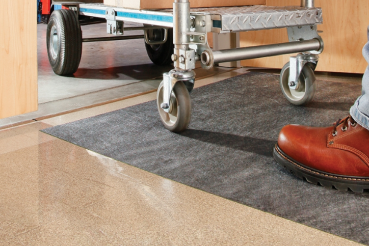 Adhesive mats are ideal for indoor use on concrete, vinyl, linoleum, tile, and laminate flooring. The adhesive-backed floor mat stays exactly where you put it with no shifting, bunching up, or ripples that cause slips and trips. Dries out quickly without moisture soaking through to the floor; absorbs water, oil and grease and traps dirt and salt to keep it from being tracked around.